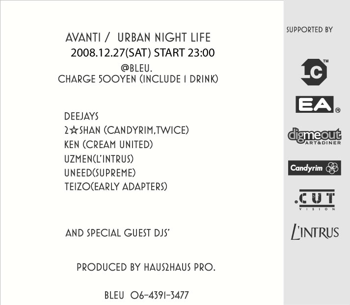 12/27 Sat 23:00~ AVANTI URBAN NIGHT LIFE