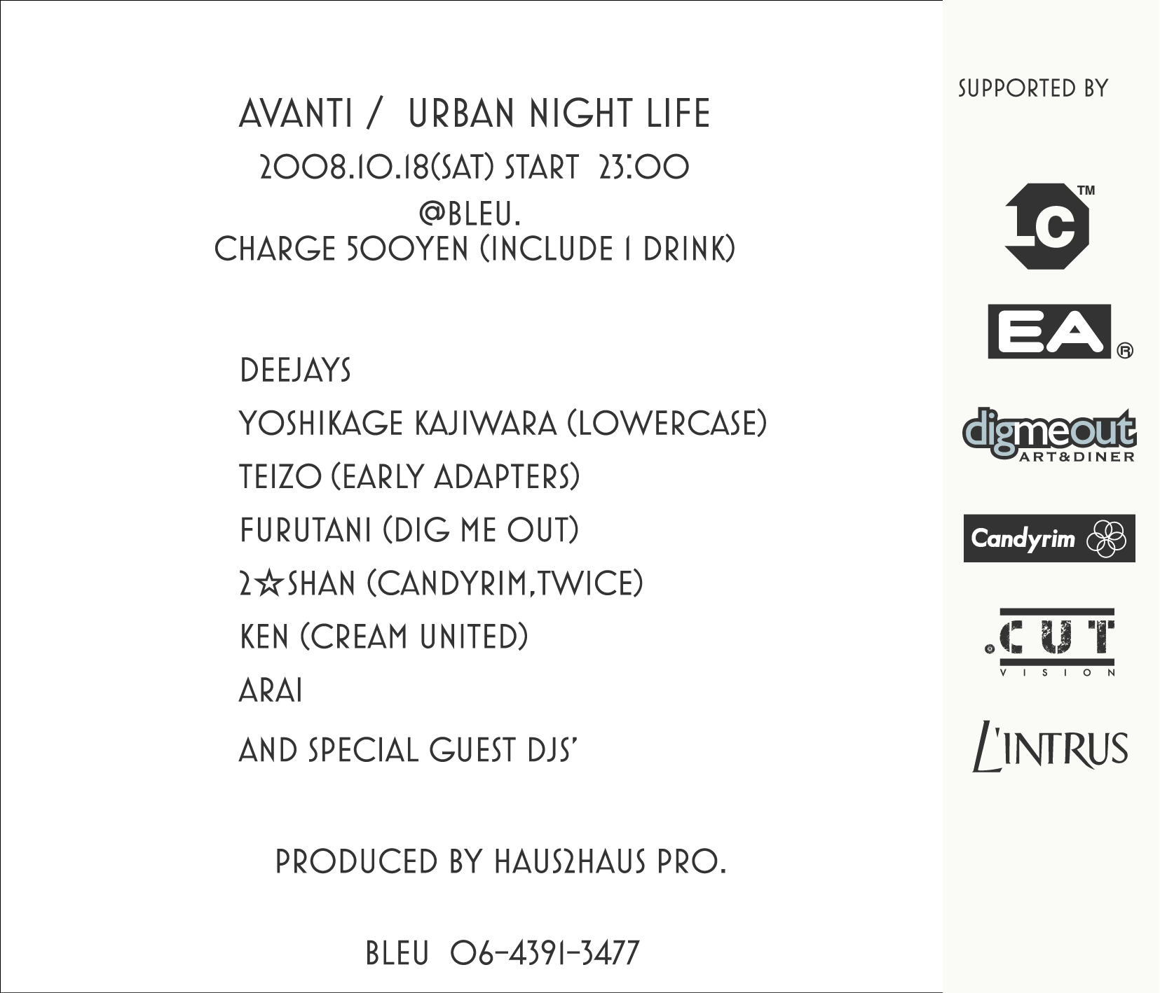 OPEN/START:20:00/21:00~ALL NIGHT