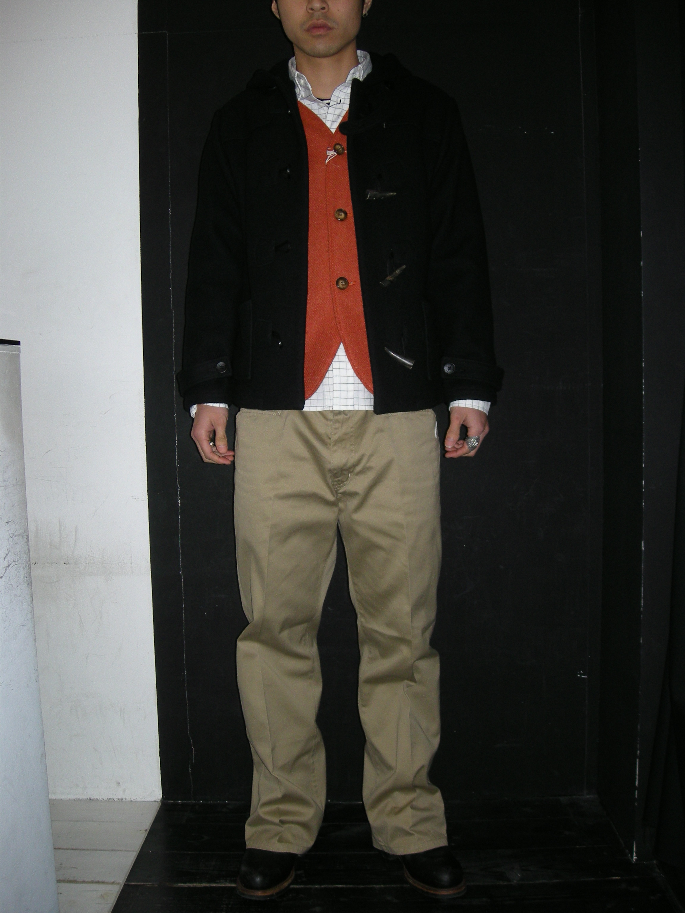STYLING SAMPLE January 18. 2010 本日はスタイリングを1つご紹介します。 以下 ブランド アイテム名 サイズの順です。 TO 「TRANCE COAT」L ARTYZ 「HARRIS TWEED VEST」M ORIGINAL FAKE 「LS TEETH POCKET SHIRT GRAPH CHECK」 2 LET IT LIDE 「WORK-PANTS」 M MODEL:178CM