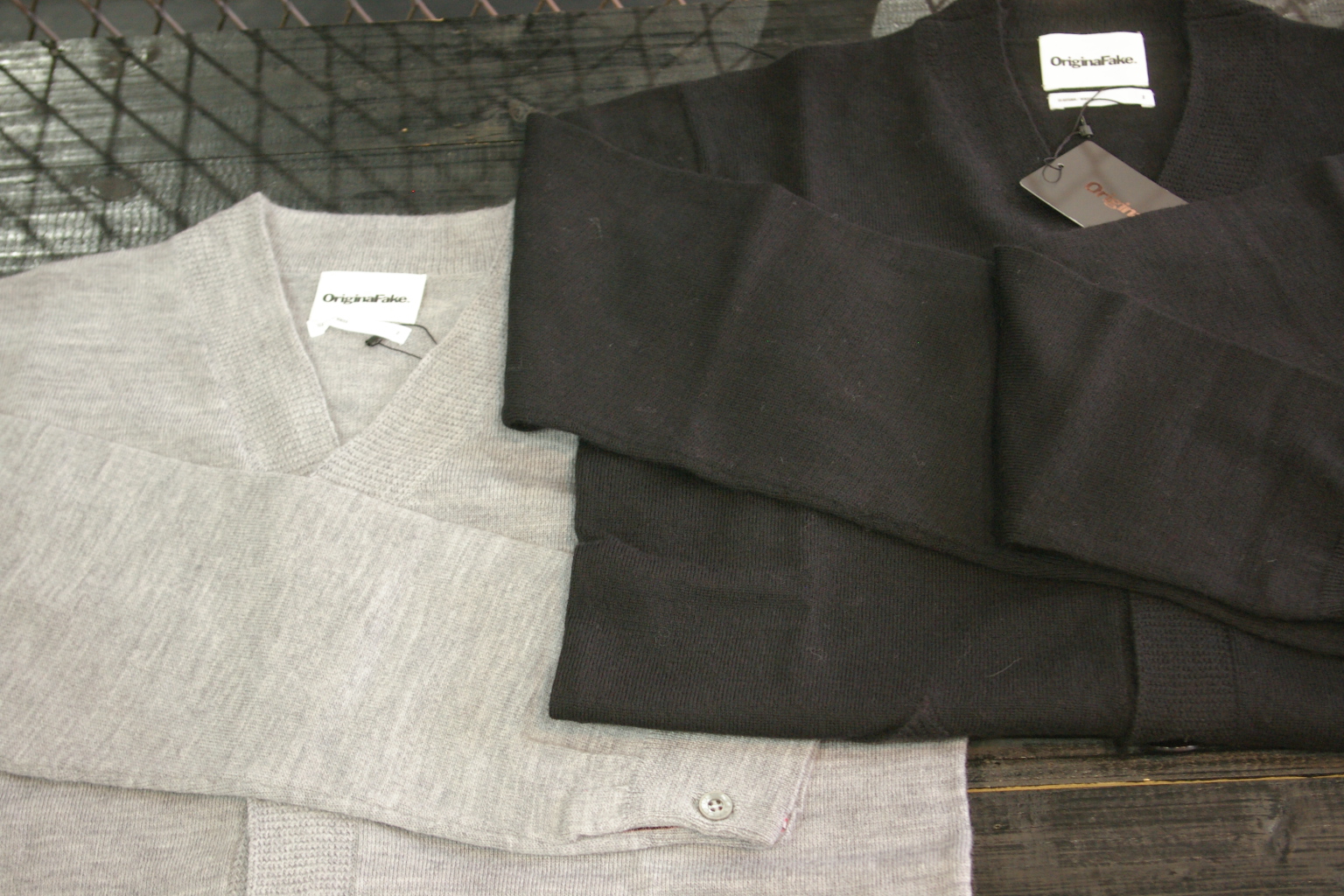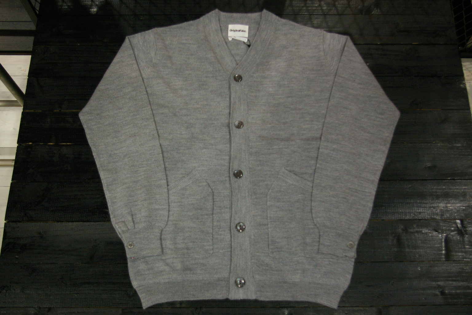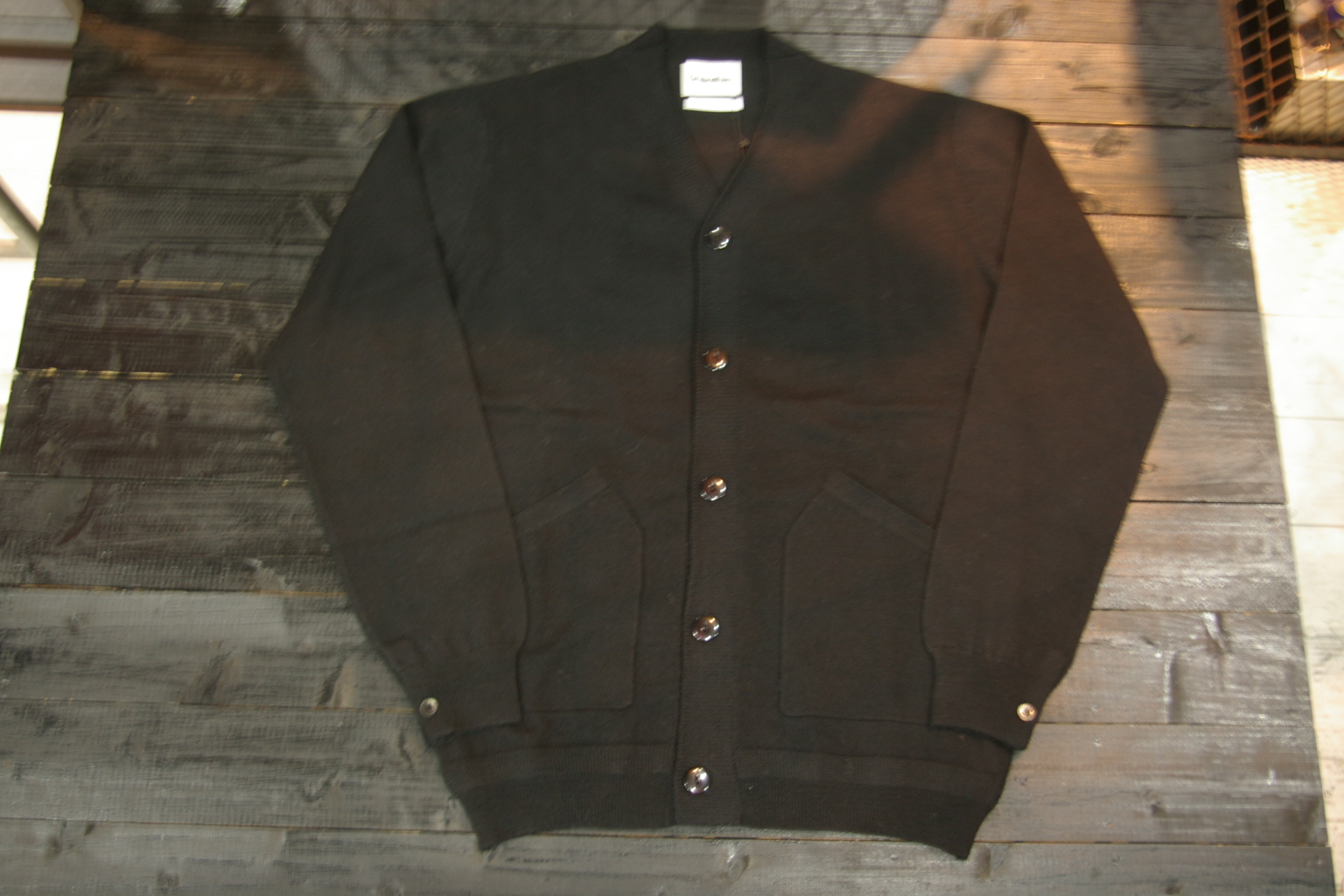 CARDIGAN from OriginalFake August 15. 2010 CARDIGAN ¥15,800- 高品質のウールによるカーディガンです。 袖リブがカフス仕様になっており、釦下・ホール下にTEETH柄のテープを施しアクセントとしました。 裾リブは編みかえとなっており、着用によるニット特有の伸びを止める役目を与えています。